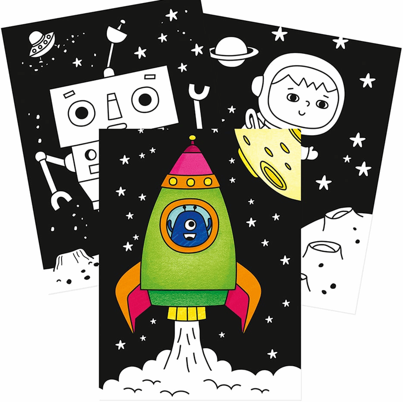 Graffy Black fargeleggingsbøker kommer i et stort format på 21 x 34,2 cm. Bøkene inneholder 160g kvalitetspapir og er perfekte for både tusjer og fargeblyanter. Unikt for bøkene er at sidene har sorte områder rundt motivene for å skjule fargelegging utenfor linjene. Fargeleggingsbøkene er ideelle for små kunstnere fra 3 år og oppover.