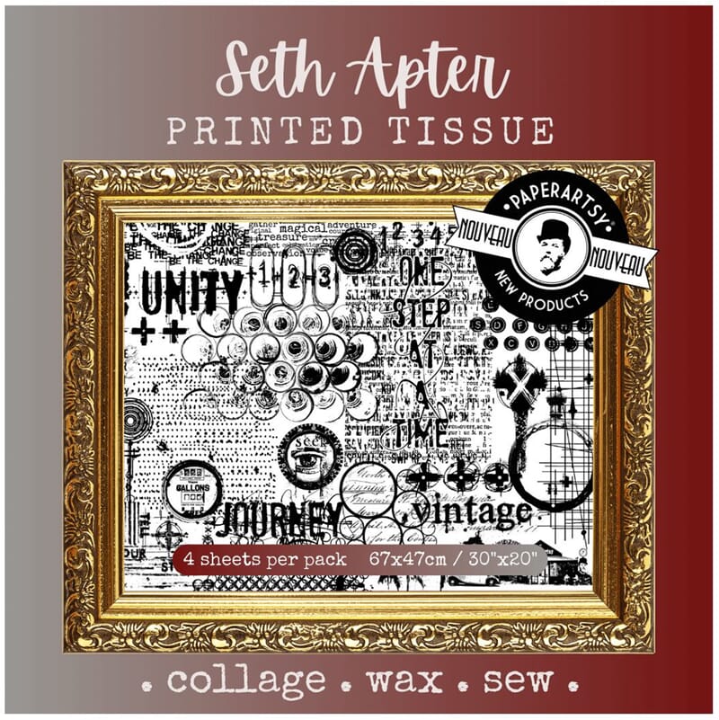 Silkepapir med motiver fra PaperArtsy designet av kjente designere innen kortlaging og scrapbooking. Her får du tissue paper som er flotte til å lage collage med, art journalsider, bakgrunner på både kort og layouts, og mye mer!