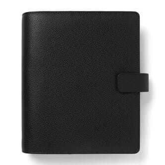 A gender-neutral organiser created with sustainability and lifestyle organisation in mind. Crafted from vegan grain leather made from 100% post-consumer recycled plastic and featuring 100% recycled, fountain pen friendly paper, this collection offers a stylish yet conscious choice. With the innovative feature of Charcoal removable rings, the Camden Organiser is available in Black, Olive and Mocha & redefines flexibility and functionality, making it easier than ever to customise any planning experience.
