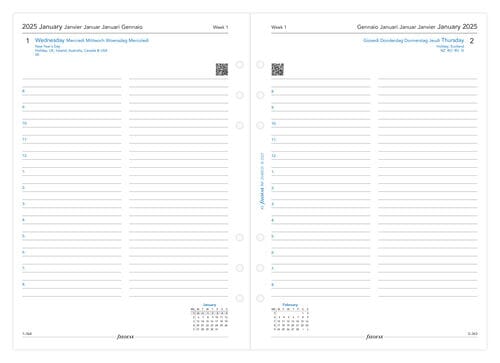 • Filofax HVIT Refill Dagbok En Dag på en side horisontal 2025