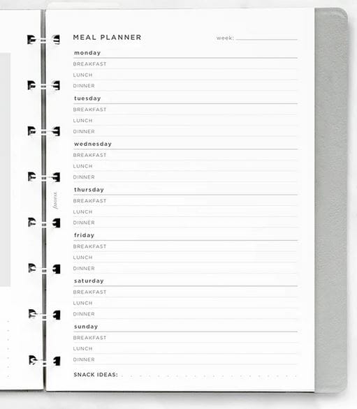 Plan delicious recipes and stick to grocery budgets in our Meal Planner Refill, designed for your A5 Filofax Refillable Notebook. 56 sheets.