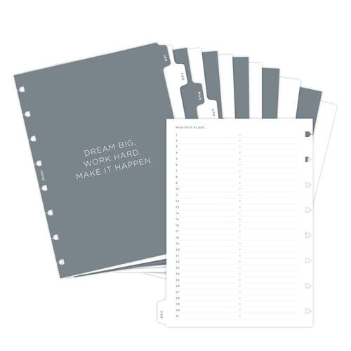 Innsett til Filofax Notebooks - skilleark med månedsoversikt. Her får du en linje pr dato og som gjør at du enkelt kan få en oversikt over måned og avtaler. Disse innsettene går både til A5 notebooks og planners.