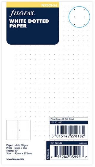 Innsett fra Filofax, str 95x171 mm, 30 ark