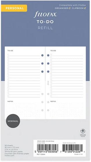 Notatark / listeark fra Filofax til Personal planner - Keep on top of your daily errands and avoid those tasks from piling up with this to-do refill - designed for your Personal Filofax organiser.