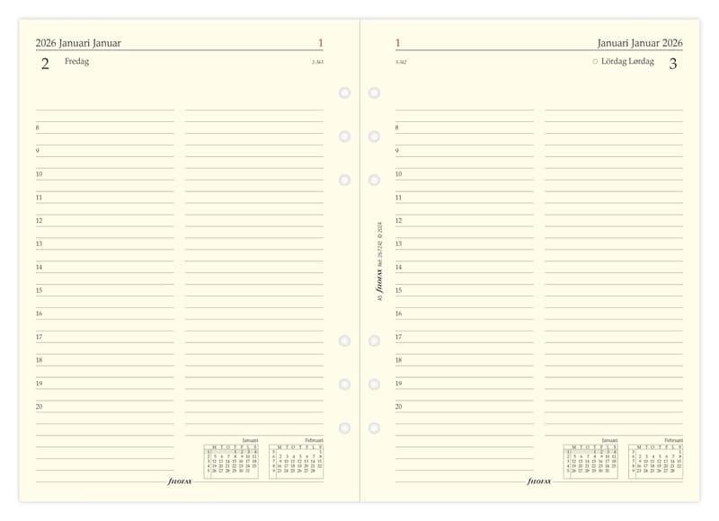 • Filofax - Refill Dagbok En Dag på en side, horisontal 2026