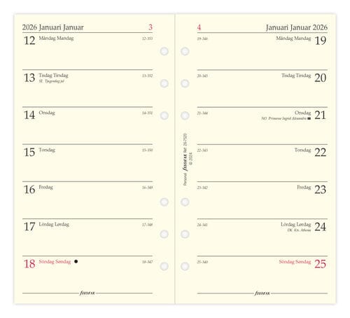 • Filofax - Refill Personal 2026 Uke pr side