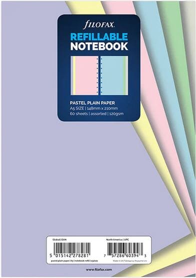 Fargede ark til Notebooks fra Filofax i størrelse A5, str 148x210 mm. Det er 60 ark i pakken og arkene har 120 gsm.