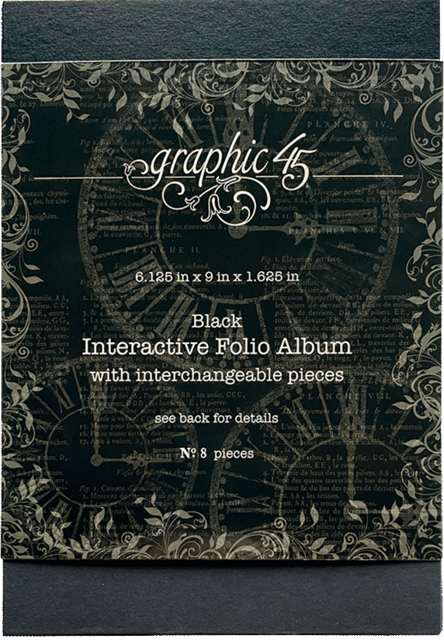 Interactive Folio Album with Interchangeable Pieces (Black). Folio Album Dimensions (when closed) - 6.125 in x 9 in x 1.625 in. Folio Album Cover (when open) - 9 in x 19.25 in. Folio Includes the following interchangeable pieces. Half Pocket 5 in x 4.5 in (2 of each included). Full Pocket 6 in x 9 in (2 of each included). Waterfall 4.5 in x 7 in (2 of each included). Wallet Folder 16.375 in x 18 in. Cover the interchangeable pieces with your favorite G45 papers and adhere them inside the album cover to create your own unique album!