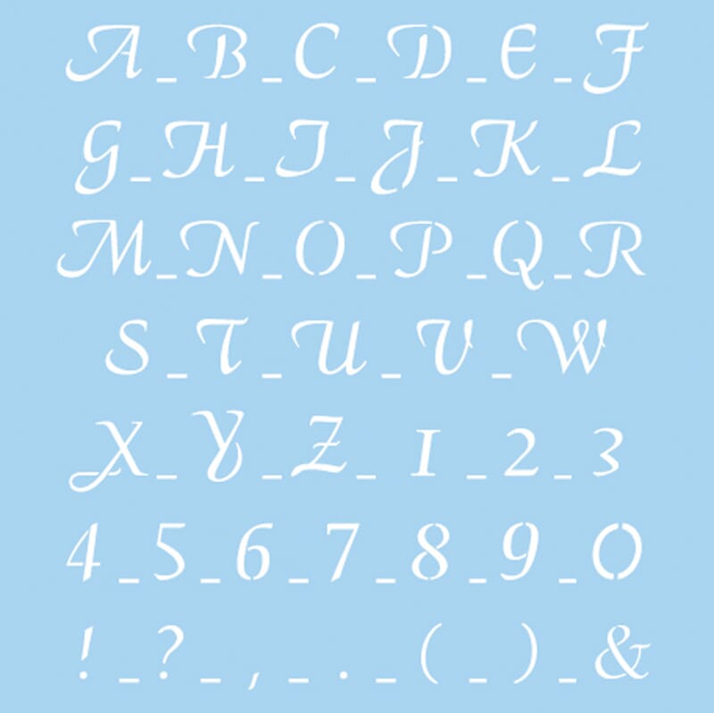 Alfabet stensil for maling, sjablongmaling, kalkmaling og andre medier som strukturpasta, o.l.