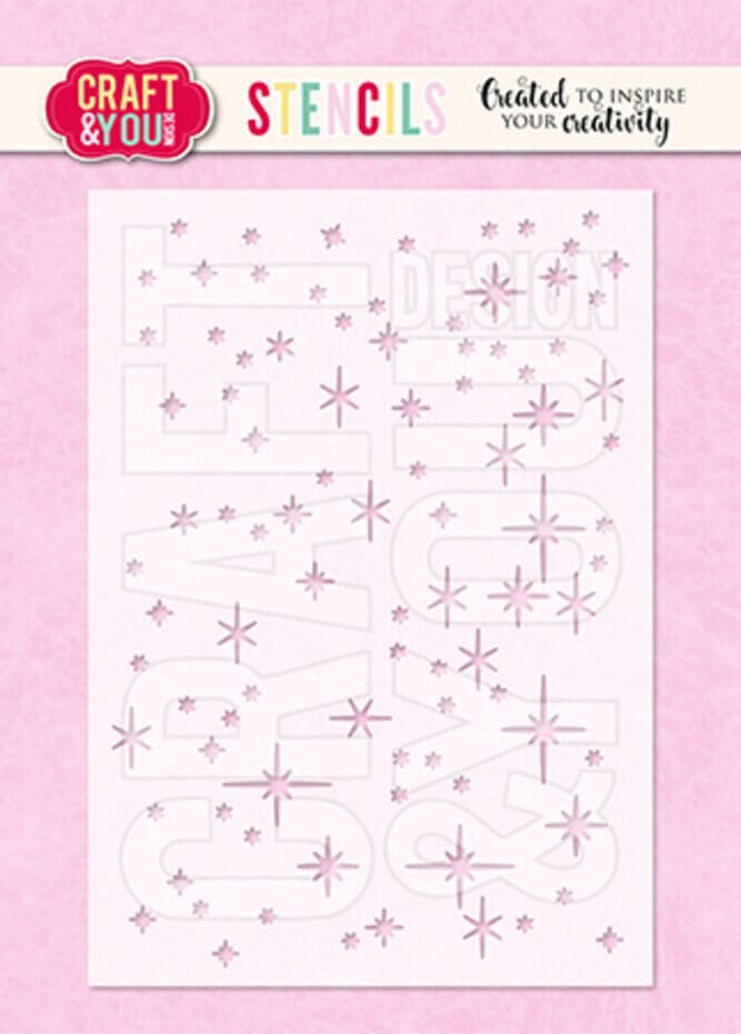 Bruk stensilen på bakgrunner og kartong sammen med spray, akrylmaling, blekk, strukturpasta og mer. Husk å rengjøre etter bruk.