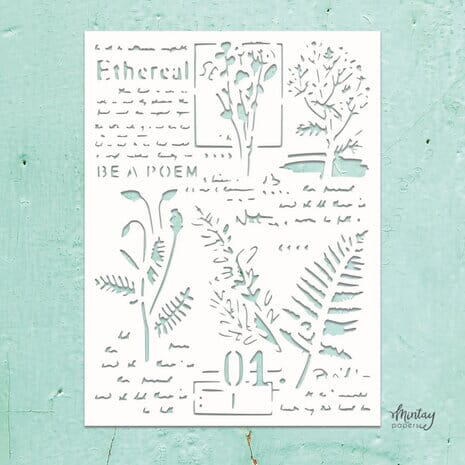 Bruk stensilen på bakgrunner og kartong sammen med spray, akrylmaling, blekk, strukturpasta og mer. Husk å rengjøre etter bruk.