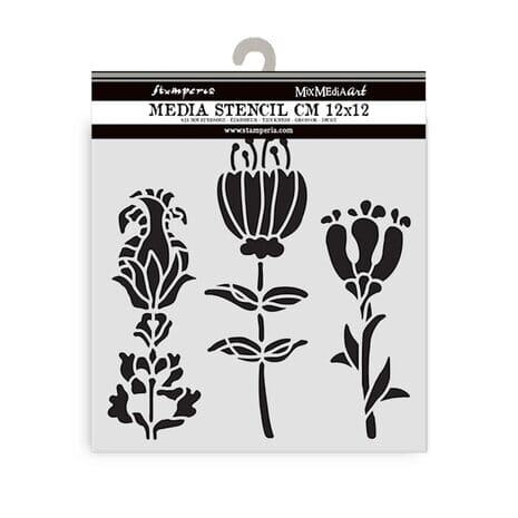 Stensil fra Stamperia som kan brukes sammen med blekk, strukturpasta, spray og liknende medier. Lag kreative bakgrunner med denne og tilpass fargene etter kort og anledning.