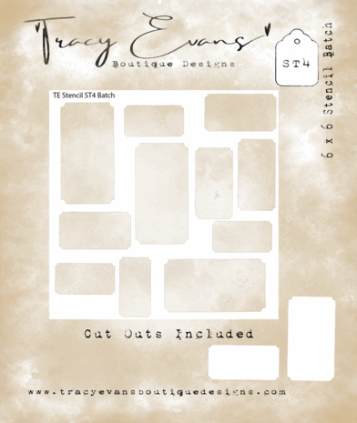 Stensil / maske fra Tracy Evans til bakgrunnsteknikker og kreative prosjekt. Brukes sammen med blekk, maling eller strukturpasta. Stencils for projects like scrapbooking, making cards or home decor. For specific product information take a look at the product image.