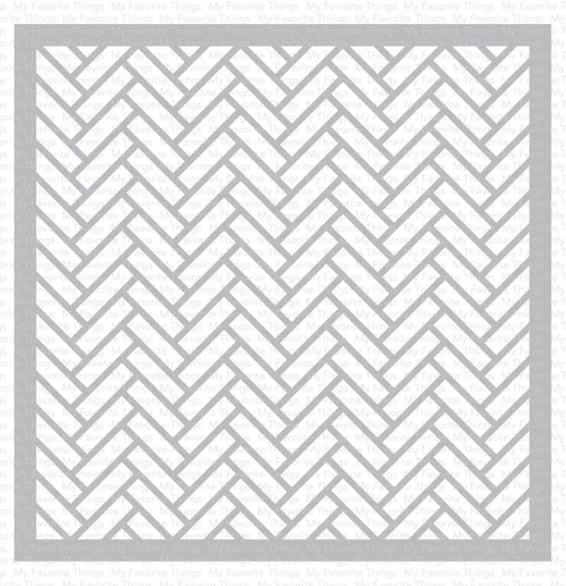 Stensil fra My Favorite Things som kan brukes sammen med blekk for å lage felt med avskilt farge, enten som ramme eller som et spesifikk felt. Classic configurations like a neat herringbone never go out of style. That repetition of tightly locked bricks is a staple when it comes to adding a comforting, traditional pattern to your projects. Blend, mist, or add touchable texture with your favorite paste or dimensional medium - no matter the technique, the results will be stunning and memorable! My Favorite Things is thrilled to bring you our line of premium stencils. These exclusive, American-made stencils will be an essential ingredient in your paper crafting and mixed media projects from this moment forward. With our stencils you can paint, spray, mist, spritz, airbrush, sponge, doodle, mask, and more on a variety of surfaces including card stock, canvas, cork, chipboard, acetate, and fabric. 6 x 6 inch stencil.