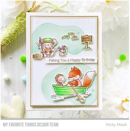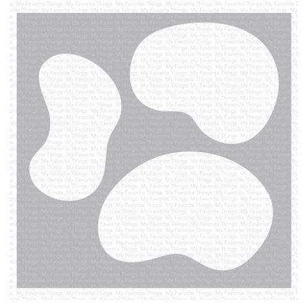 Stensil fra My Favorite Things som kan brukes sammen med blekk for å lage felt med avskilt farge, enten som ramme eller som et spesifikk felt. Stencils are a cost-effective tool that provide for the application of an endless variety of mediums. This stencil, in particular, provides for an endless variety of scene-building options as well, though! It features three amorphous shapes intended to create grounding elements to accommodate a range of characters, critters, and scenes. Take your pick of the spots to craft pastures for grazing farm animals, ponds for frogs, ducks, and insects to inhabit, or pools for summer relaxation. You could also use these versatile shapes to craft custom-patterned panels for your cards and tags. We're excited by the possibility this humble design will add to your crafting!