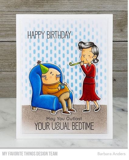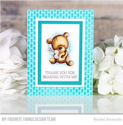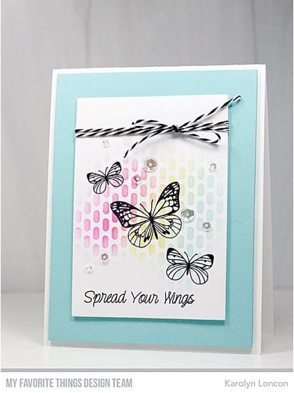Stensil fra My Favorite Things som kan brukes sammen med blekk, strukturpasta, spray og liknende medier. Lag kreative bakgrunner med denne og tilpass fargene etter kort og anledning.