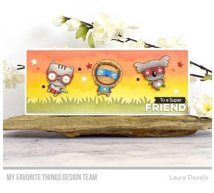 Stensil fra My Favorite Things som kan brukes sammen med blekk, strukturpasta, spray og liknende medier. Lag kreative bakgrunner med denne og tilpass fargene etter kort og anledning. Up your slimline scene-setting game with this dual-edged stencil. At 9” in length, the two distinct edges will stretch the width of your card, resulting in an inviting and lush grass backdrop for your designs. Flip the stencil over for even more versatility!