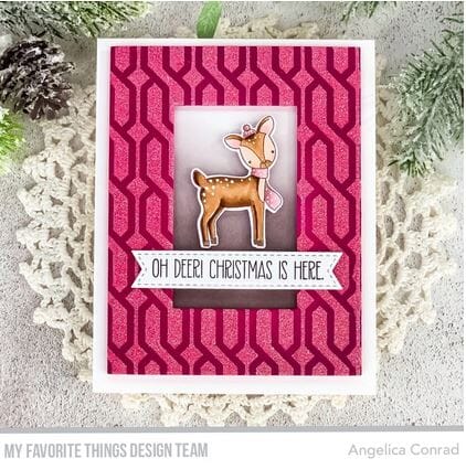 Stensil fra My Favorite Things som kan brukes sammen med blekk, strukturpasta, spray og liknende medier. Lag kreative bakgrunner med denne og tilpass fargene etter kort og anledning. An intricate weave of neat knit stitches will instantly up the cozy factor on your cards, tags, and paper projects. A beautifully blended background, a textural masterpiece your recipient can’t help but touch, or, if you’re feeling super motivated, handmade wrapping paper featuring this unmistakable pattern — you’ll never tire of all the ways this versatile design can be used in your crafting!