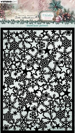 En vakker sjablong i A5-format med klassisk snøfnuggmønster, perfekt til å skape vinterlige bakgrunner og detaljer på juleprosjektene dine. Bruk den med maling, blekk, pasta eller spray for å gi arbeidene dine en ekstra stemningsfull effekt.