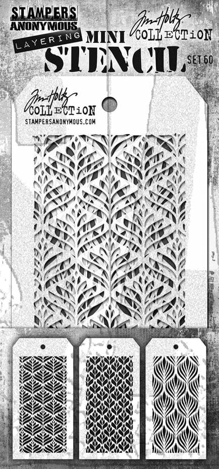 Sjablong fra Tim Holtz perfekt for kortlaging, scrapbooking, samt Art Journaling og Mixed Media. Bruk gjerne sammen med Distress blekk, Distress Paints eller Distress Stains, men passer også perfekt til ulike type sprayer og mist. Use these stencils to layer inks, paints, stains - so many creative ways to use them to enhance your projects.