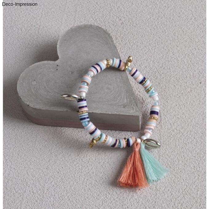 Kule fargeblandinger med flate perler og dekorative elementer, fargerike dusker og en elastisk tråd - dette trendy perlesettet inneholder alt, og nok til ca 3 armbånd. Heishi-perler er flate, skiveformede perler, og kombinert med glassperler, metallsmykkeelementer og dusker kan du lage helt spesielle armbånd til deg selv eller som gave. Fargene er harmonisk koordinert i hvert sett og kan tres etter ønske. Uansett hva du velger, ser det alltid bra ut.