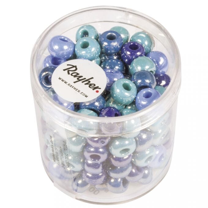 Perle boksen inneholder glassperler i forskjellige farger med store hull for armbånd, smykkereimer og DIY smykker.