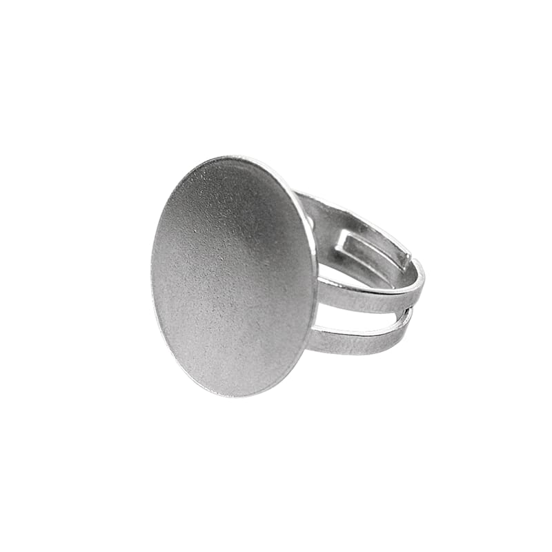 Ring med 2 cm arbeidsflate hvor man limer på et forstykke på ringen. Du kan lime på det meste med riktig limtype, vi anbefaler smykkelim varenr. 3339700.