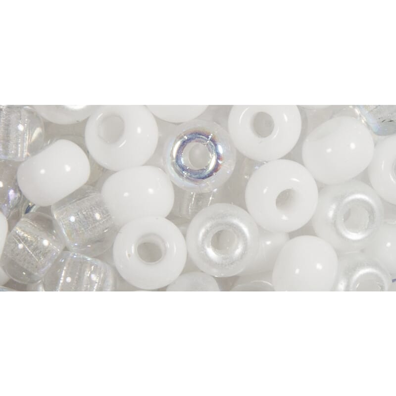 Rocailles perler med stort hull, der dimensjonen på perlen er 5.5 mm og hullet er 2 mm. Perler til smykkelaging, DIY smykke og armbånd. Noen av perlene er glanset, og andre matte avhengig av farge og alle matcher slik at de gjør seg godt på et smykke. Disse perlene tåler håndvask.