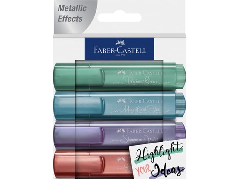 Alt i en pakke, dersom du liker metallik farger i planneren eller skoledagboken din. Utrolig lekre farger og flotte til bruk i handlettering og tegning. Det er 8 highlight tusjer i pakken i metallik fargene Precious Green, Magnificent Blue, Shimmering Violet og Glorious Red.