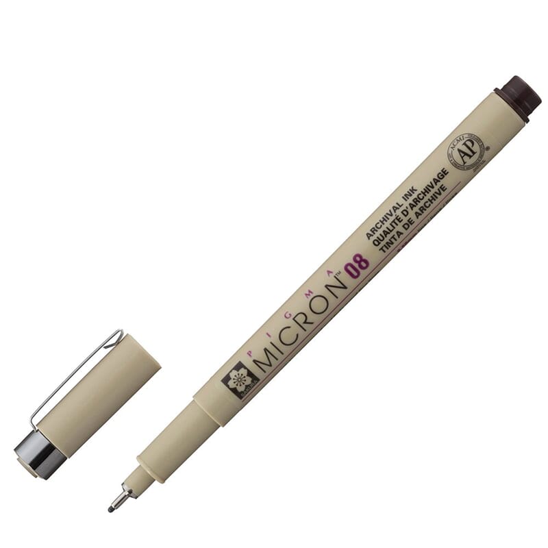Presisjonspen som er vannfast og tørker fort. Blekket blør ikke etter tørking, og tåler sollys og UV-lys. Velegnet til skrift, tegning og til bruk med bl.a. akvarellfarger. Fester på både papir, tre, stoff og kartong. Presis spiss forsterket med metall. Føres i mange forskjellige strekbredder.