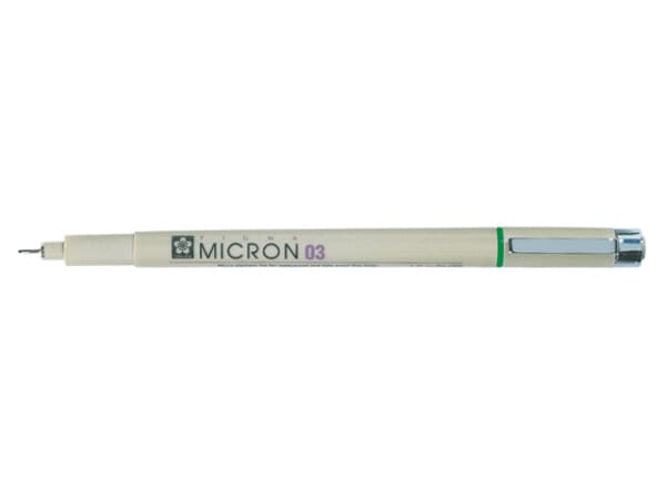 Presisjonspen som er vannfast og tørker fort. Blekket blør ikke etter tørking, og tåler sollys og UV-lys.