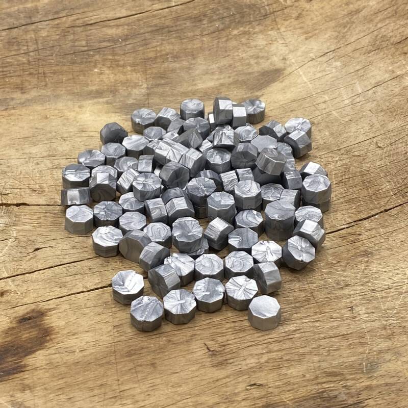 Voks til seglstempel fra Papirdesign. Voksen smeltes og helles over en konvolutt, gavepapir, kort, m.m. Deretter dyppes stempelet oppi voksen.